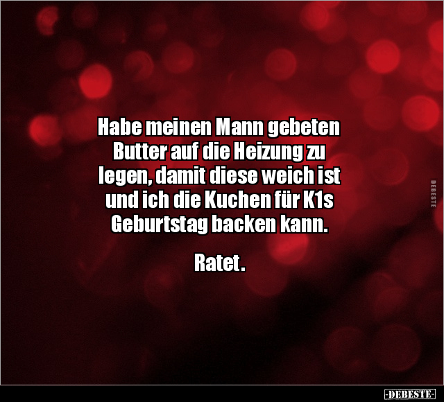 Habe meinen Mann gebeten Butter auf die Heizung zu legen, damit diese weich ist und ich die Kuchen für K1s Geburtstag backen kann. Ratet.