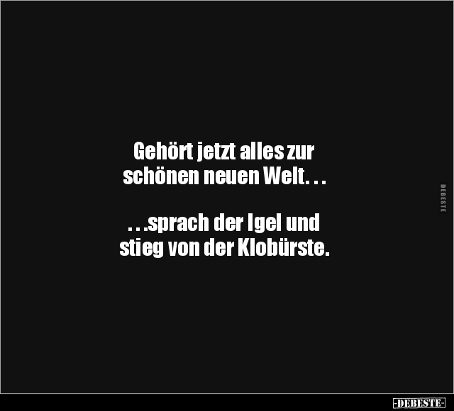 Gehört jetzt alles zur schönen neuen Welt. . . . . .sprach der Igel und stieg von der Klobürste.