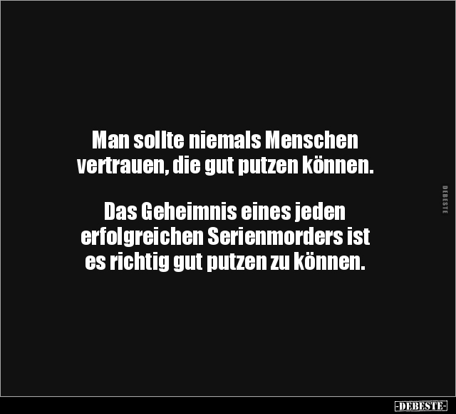 Man sollte niemals Menschen vertrauen, die gut putzen können. Das Geheimnis eines jeden erfolgreichen Serienmorders ist es richtig gut putzen zu können.