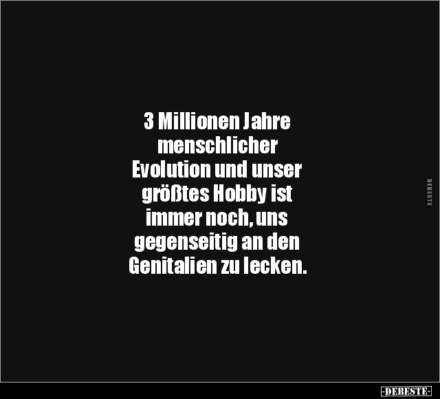 3 Millionen Jahre menschlicher Evolution und unser größtes Hobby ist immer noch, uns gegenseitig an den Genitalien zu lecken.