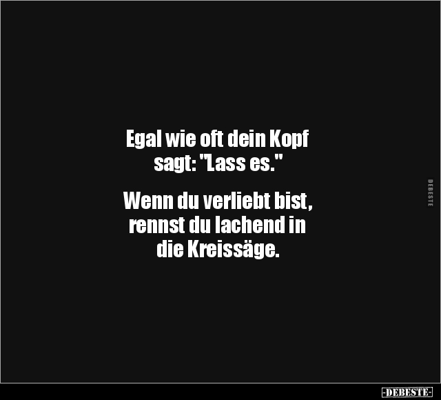 Egal wie oft dein Kopf sagt: "Lass es." Wenn du verliebt bist, rennst du lachend in die Kreissäge.