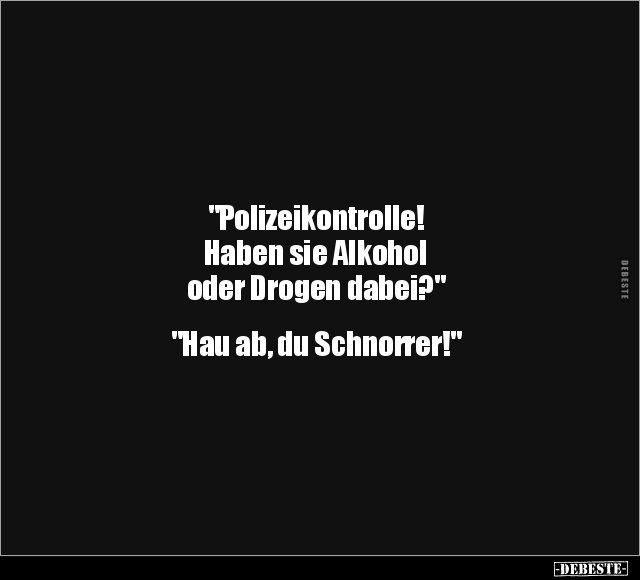 "Polizeikontrolle! Haben sie Alkohol oder Drogen dabei?" "Hau ab, du Schnorrer!"