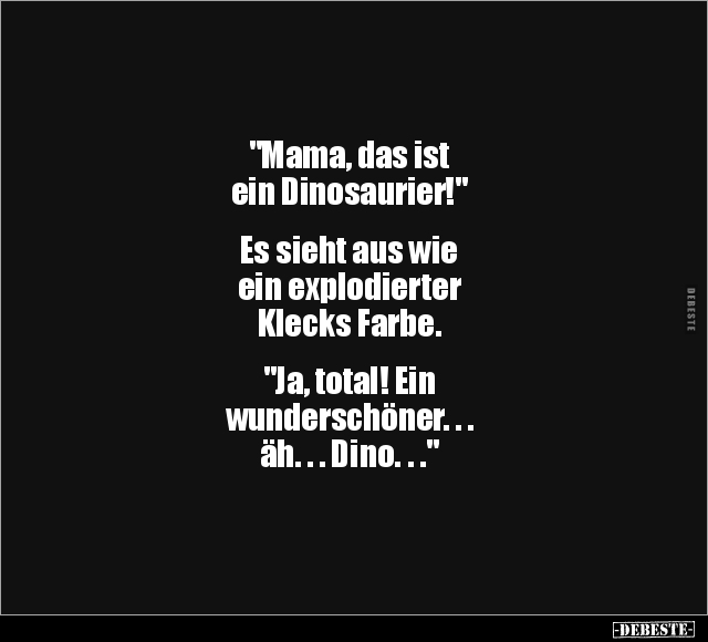 "Mama, das ist ein Dinosaurier!" Es sieht aus wie ein explodierter Klecks Farbe. "Ja, total! Ein wunderschöner. . . äh. . . Dino. . ."