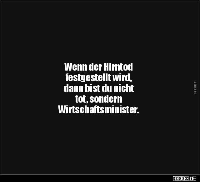 Wenn der Hirntod festgestellt wird, dann bist du nicht tot, sondern Wirtschaftsminister.