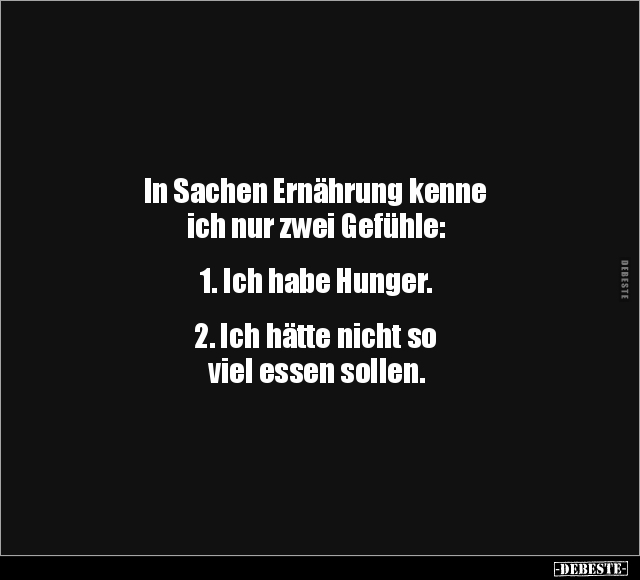 In Sachen Ernährung kenne ich nur zwei Gefühle: 1. Ich habe Hunger. 2. Ich hätte nicht so viel essen sollen.