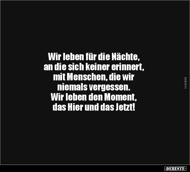 Wir leben für die Nächte, an die sich keiner erinnert, mit Menschen, die wir niemals vergessen. Wir leben den Moment, das Hier und das Jetzt!
