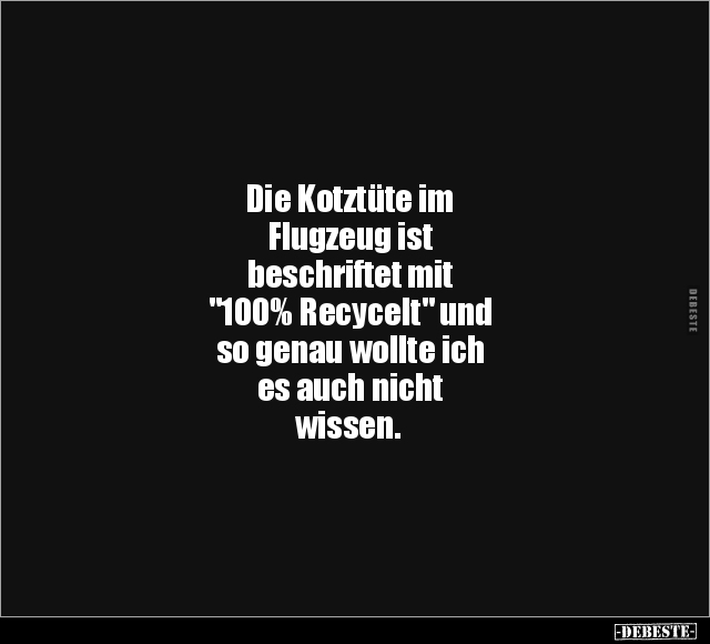 Die Kotztüte im Flugzeug ist beschriftet mit "100% Recycelt" und so genau wollte ich es auch nicht wissen.