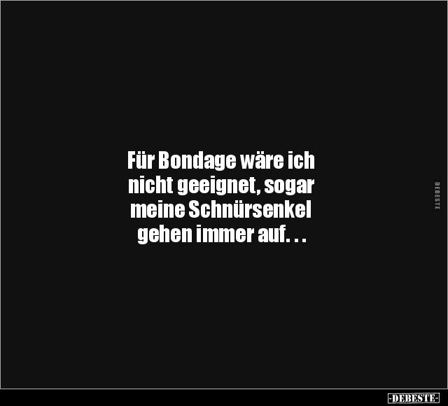 Für Bondage wäre ich nicht geeignet, sogar meine Schnürsenkel gehen immer auf. . .
