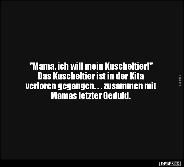 "Mama, ich will mein Kuscheltier!" Das Kuscheltier ist in der Kita verloren gegangen. . . zusammen mit Mamas letzter Geduld.