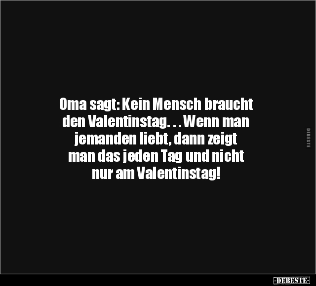 Oma sagt: Kein Mensch braucht den Valentinstag. . . Wenn man jemanden liebt, dann zeigt man das jeden Tag und nicht nur am Valentinstag!