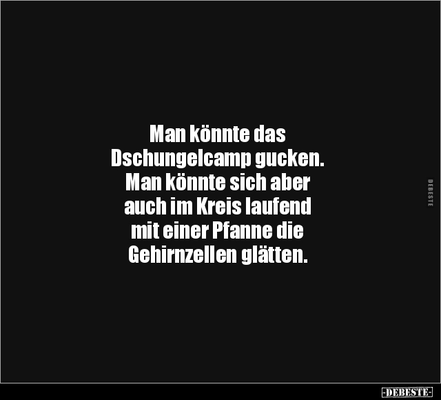 Man könnte das Dschungelcamp gucken. Man könnte sich aber auch im Kreis laufend mit einer Pfanne die Gehirnzellen glätten.