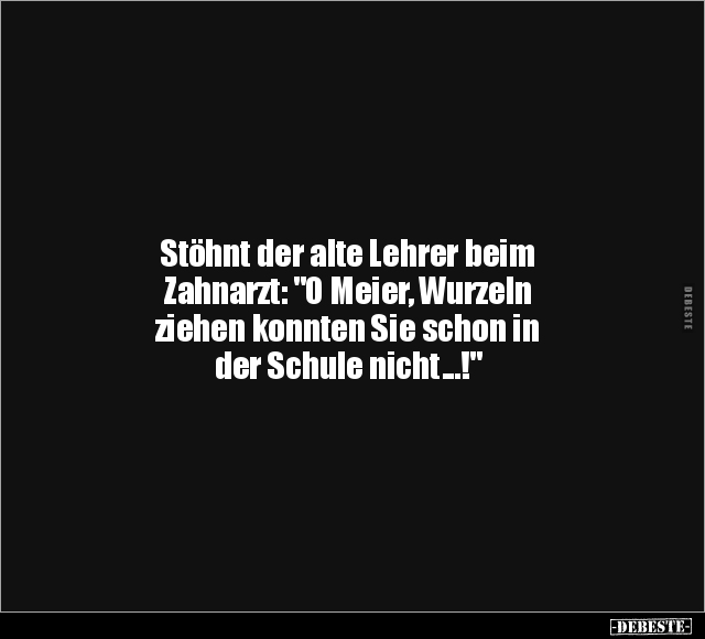 Stöhnt der alte Lehrer beim Zahnarzt: "O Meier, Wurzeln ziehen konnten Sie schon in der Schule nicht...!"