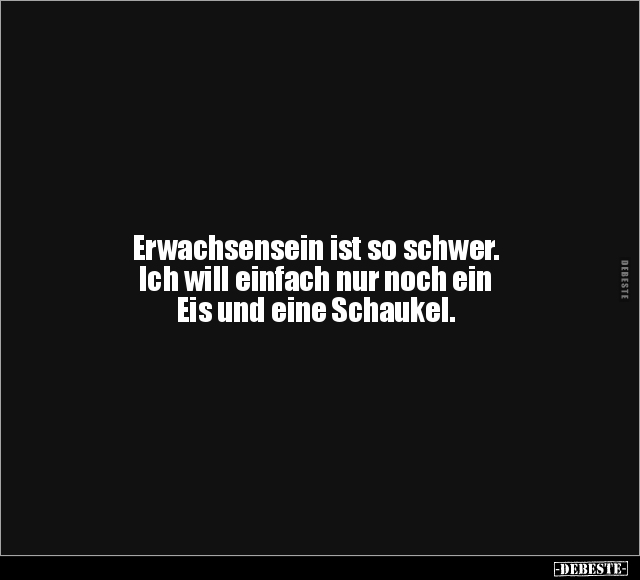 Erwachsensein ist so schwer. Ich will einfach nur noch ein Eis und eine Schaukel.