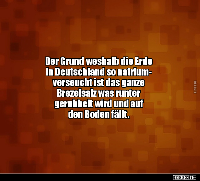 Der Grund weshalb die Erde in Deutschland so natrium- verseucht ist das ganze Brezelsalz was runter gerubbelt wird und auf den Boden fällt.
