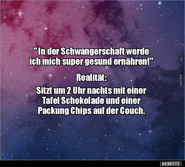 " In der Schwangerschaft werde ich mich super gesund ernähren!" Realität: Sitzt um 2 Uhr nachts mit einer Tafel Schokolade und einer Packung Chips auf der Couch.