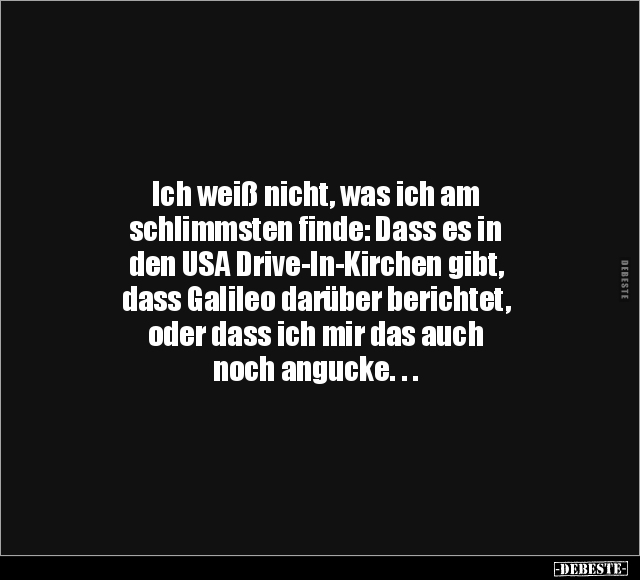 Ich weiß nicht, was ich am schlimmsten finde: Dass es in den USA Drive-In-Kirchen gibt, dass Galileo darüber berichtet, oder dass ich mir das auch noch angucke. . .