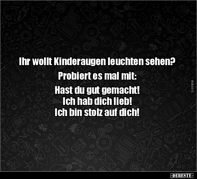 Ihr wollt Kinderaugen leuchten sehen? Probiert es mal mit: Hast du gut gemacht! Ich hab dich lieb! Ich bin stolz auf dich!