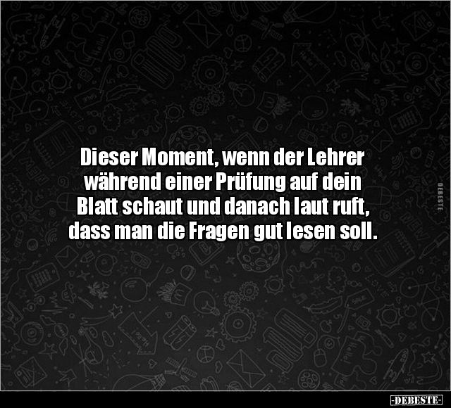 Dieser Moment, wenn der Lehrer während einer Prüfung auf dein Blatt schaut und danach laut ruft, dass man die Fragen gut lesen soll.