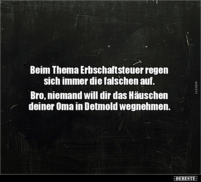 Beim Thema Erbschaftsteuer regen sich immer die falschen auf. Bro, niemand will dir das Häuschen deiner Oma in Detmold wegnehmen.