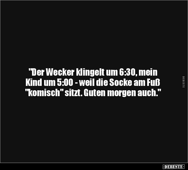 "Der Wecker klingelt um 6:30, mein Kind um 5:00 - weil die Socke am Fuß "komisch" sitzt. Guten morgen auch."