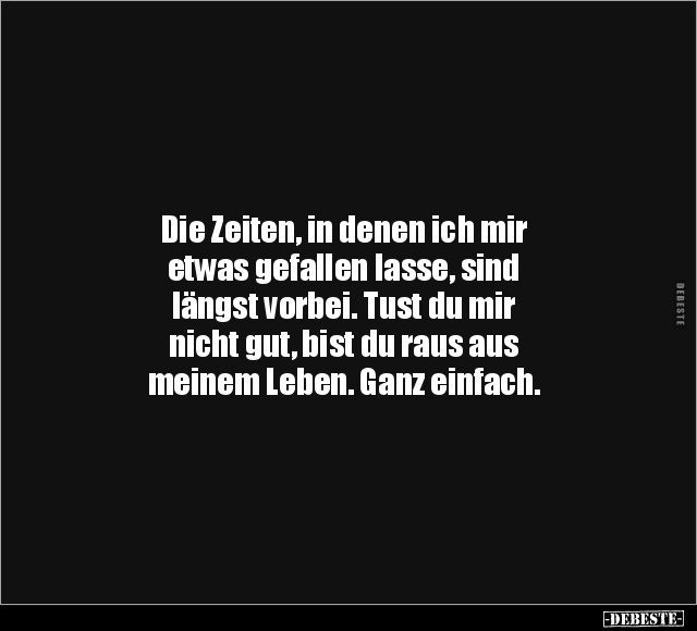Die Zeiten, in denen ich mir etwas gefallen lasse, sind längst vorbei. Tust du mir nicht gut, bist du raus aus meinem Leben. Ganz einfach.