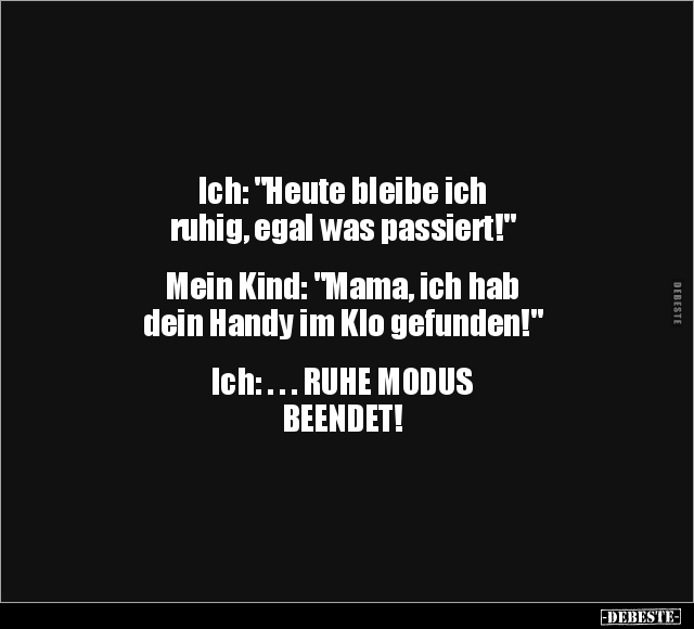 Ich: "Heute bleibe ich ruhig, egal was passiert!" Mein Kind: "Mama, ich hab dein Handy im Klo gefunden!" Ich: . . . RUHE MODUS BEENDET!