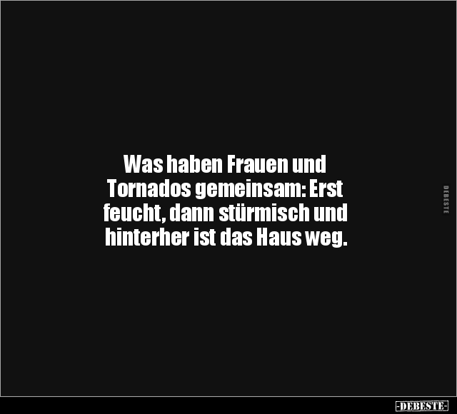 Was haben Frauen und Tornados gemeinsam: Erst feucht, dann stürmisch und hinterher ist das Haus weg.