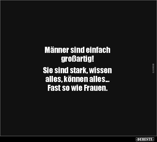 Männer sind einfach großartig! Sie sind stark, wissen alles, können alles... Fast so wie Frauen.