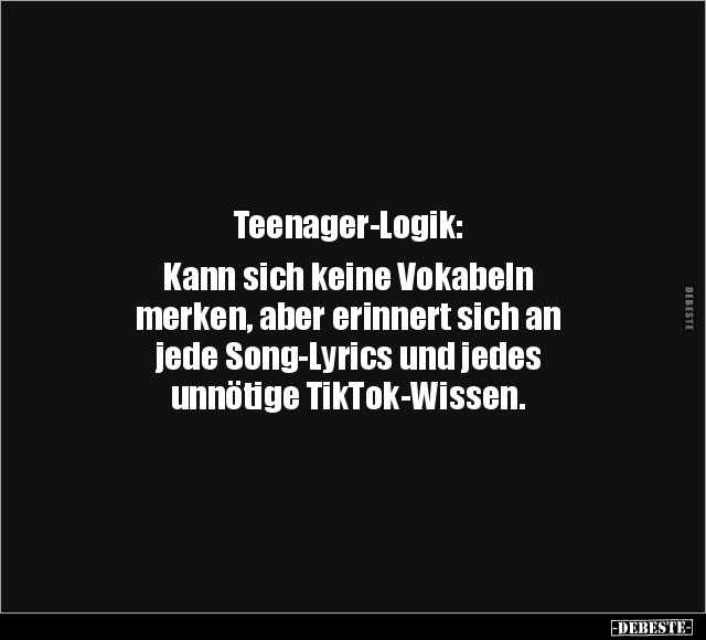 Teenager-Logik: Kann sich keine Vokabeln merken, aber erinnert sich an jede Song-Lyrics und jedes unnötige TikTok-Wissen.