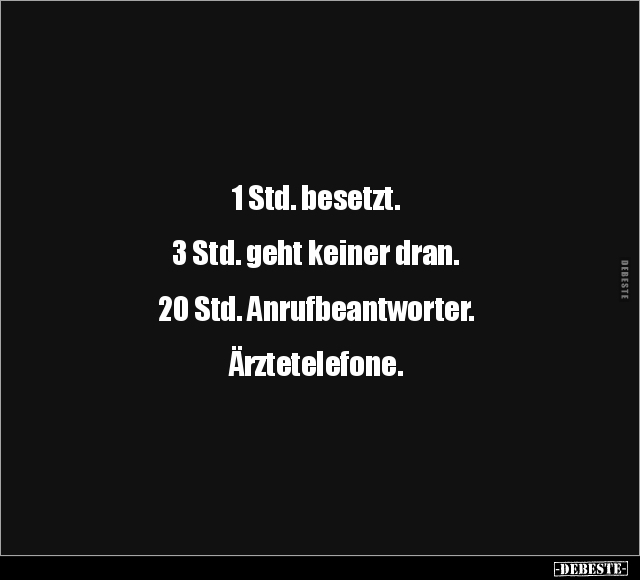 1 Std. besetzt. 3 Std. geht keiner dran. 20 Std. Anrufbeantworter. Ärztetelefone.