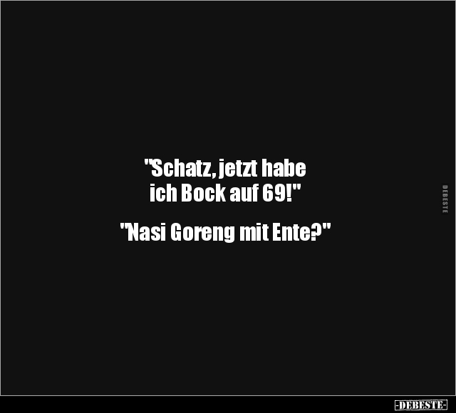 "Schatz, jetzt habe ich Bock auf 69!" "Nasi Goreng mit Ente?"