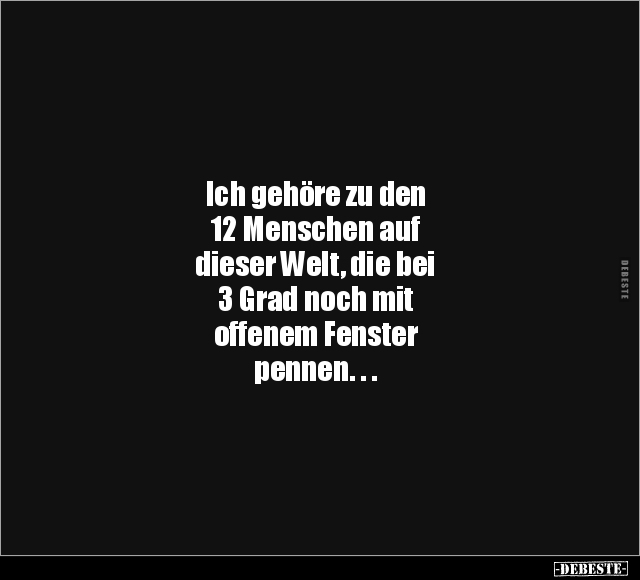 Ich gehöre zu den 12 Menschen auf dieser Welt, die bei 3 Grad noch mit offenem Fenster pennen. . .