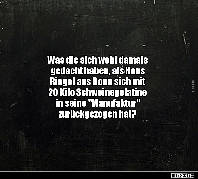 Was die sich wohl damals gedacht haben, als Hans Riegel aus Bonn sich mit 20 Kilo Schweinegelatine in seine "Manufaktur" zurückgezogen hat?