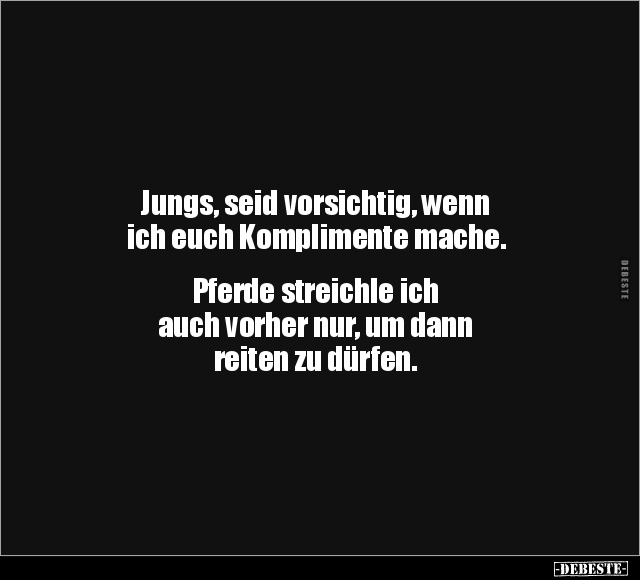 Jungs, seid vorsichtig, wenn ich euch Komplimente mache. Pferde streichle ich auch vorher nur, um dann reiten zu dürfen.