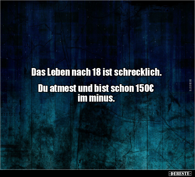 Das Leben nach 18 ist schrecklich. Du atmest und bist schon 150€ im minus.