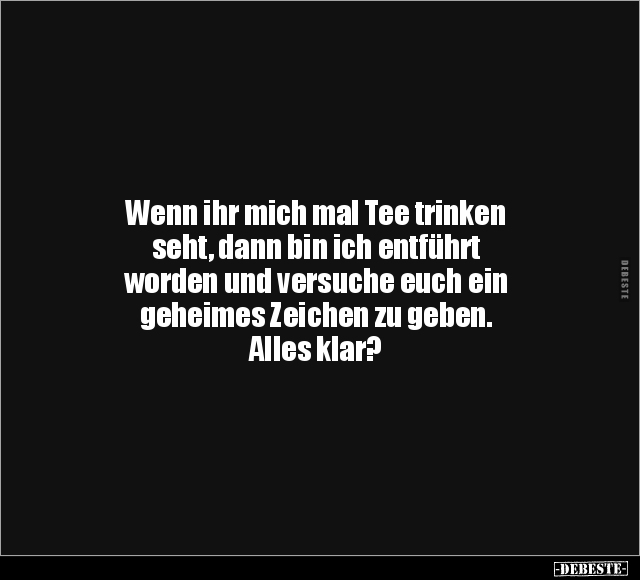 Wenn ihr mich mal Tee trinken seht, dann bin ich entführt worden und versuche euch ein geheimes Zeichen zu geben. Alles klar?