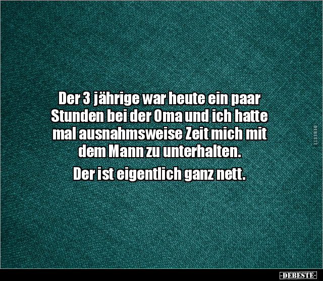 Der 3 jährige war heute ein paar Stunden bei der Oma und ich hatte mal ausnahmsweise Zeit mich mit dem Mann zu unterhalten. Der ist eigentlich ganz nett.