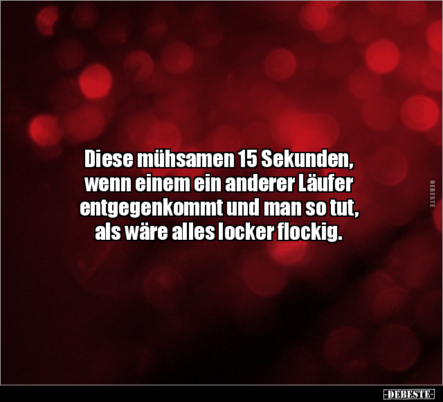 Diese mühsamen 15 Sekunden, wenn einem ein anderer Läufer entgegenkommt und man so tut, als wäre alles locker flockig.