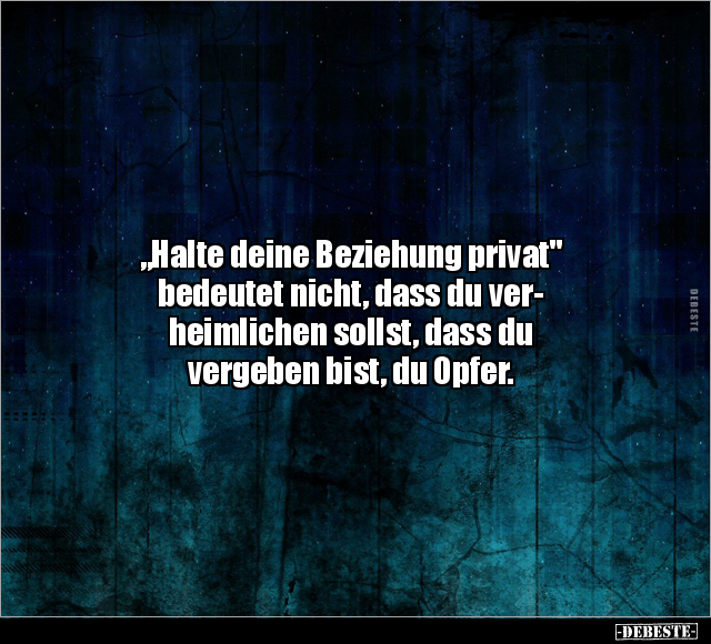 „Halte deine Beziehung privat" bedeutet nicht, dass du ver- heimlichen sollst, dass du vergeben bist, du Opfer.