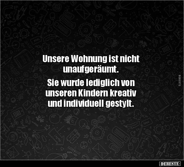 Unsere Wohnung ist nicht unaufgeräumt. Sie wurde lediglich von unseren Kindern kreativ und individuell gestylt.