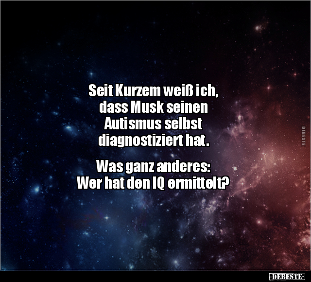 Seit Kurzem weiß ich, dass Musk seinen Autismus selbst diagnostiziert hat. Was ganz anderes: Wer hat den IQ ermittelt?