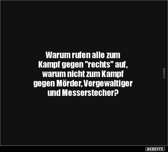 Warum rufen alle zum Kampf gegen "rechts" auf, warum nicht zum Kampf gegen Mörder, Vergewaltiger und Messerstecher?