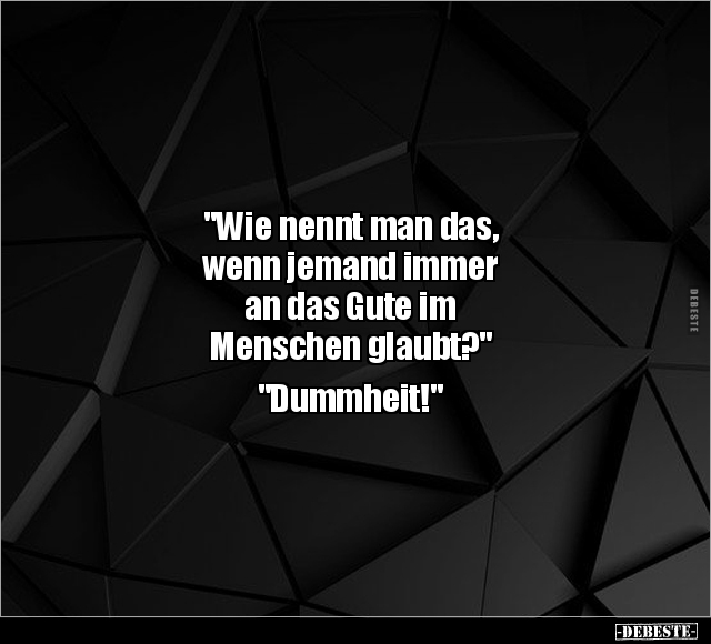 "Wie nennt man das, wenn jemand immer an das Gute im Menschen glaubt?" "Dummheit!"