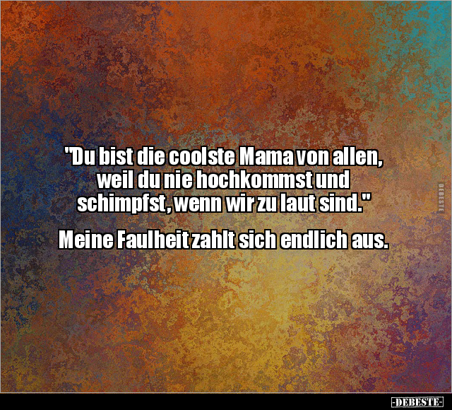 "Du bist die coolste Mama von allen, weil du nie hochkommst und schimpfst, wenn wir zu laut sind." Meine Faulheit zahlt sich endlich aus.