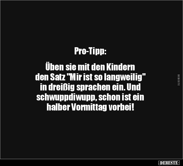 Pro-Tipp: Üben sie mit den Kindern den Satz "Mir ist so langweilig" in dreißig sprachen ein. Und schwuppdiwupp, schon ist ein halber Vormittag vorbei!