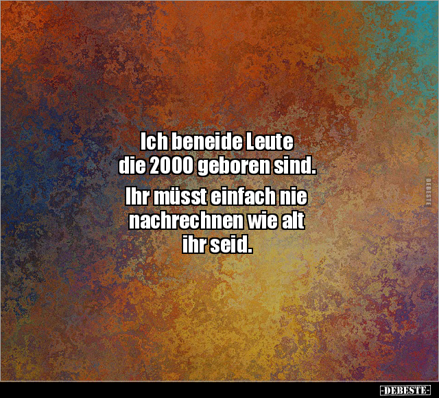 Ich beneide Leute die 2000 geboren sind. Ihr müsst einfach nie nachrechnen wie alt ihr seid.