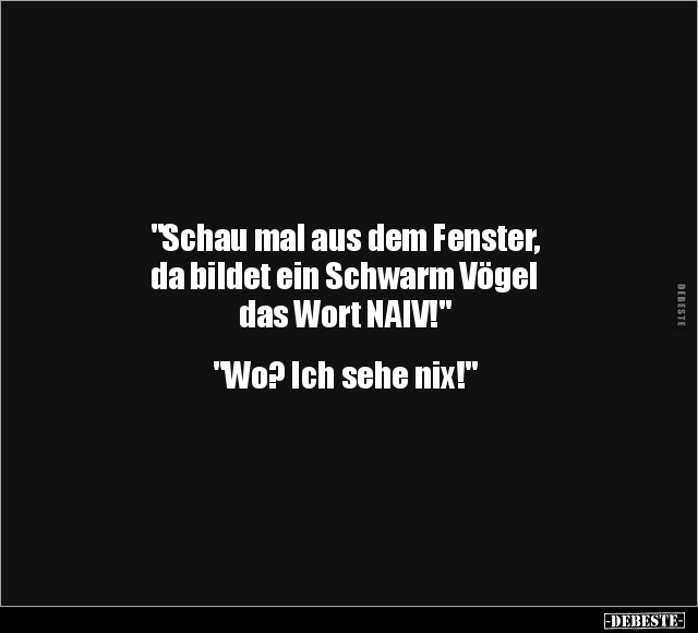 "Schau mal aus dem Fenster, da bildet ein Schwarm Vögel das Wort NAIV!" "Wo? Ich sehe nix!"
