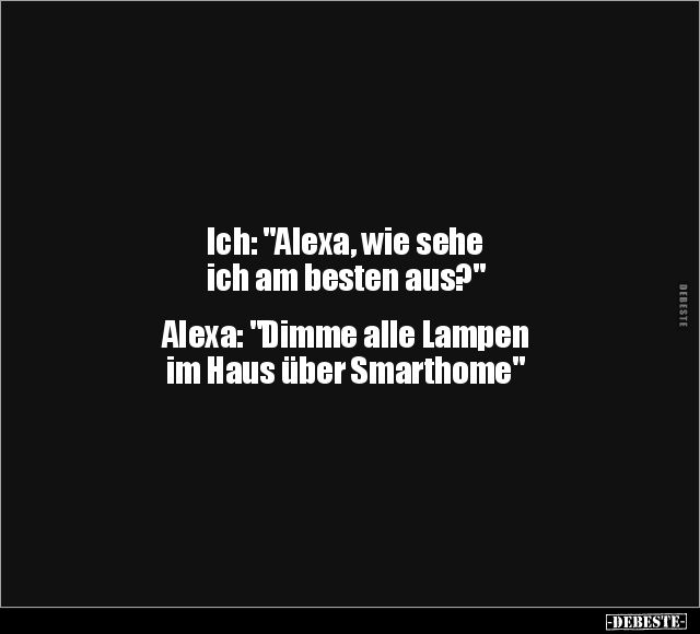 Ich: "Alexa, wie sehe ich am besten aus?" Alexa: "Dimme alle Lampen im Haus über Smarthome"