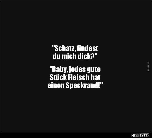 "Schatz, findest du mich dick?" "Baby, jedes gute Stück Fleisch hat einen Speckrand!"