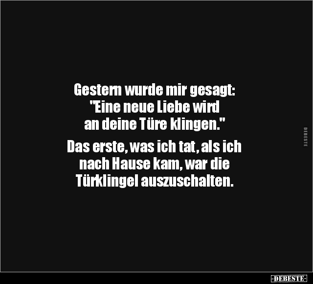 Gestern wurde mir gesagt: "Eine neue Liebe wird an deine Türe klingen." Das erste, was ich tat, als ich nach Hause kam, war die Türklingel auszuschalten.